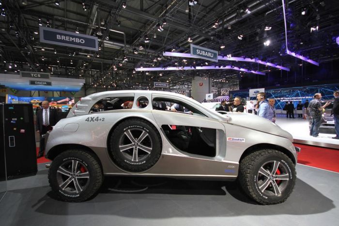 Странный, жутковатый псевдо-багги, показанный на Женевском автосалоне, компанией Sbarro, которая любит дразнить гостей мероприятия своими необычными работами. Любопытно, что подобные авто салон создает исключительно для мероприятия в Женеве.
