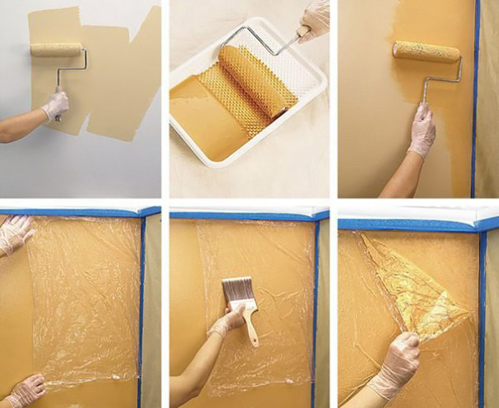 Что же понадобится для создания оригинальной текстуры? Средства, которые уже у вас под рукой. Далее в обзоре – хитрости использования обычного целлофана, губки для мытья посуды, веника, щетки для обуви и простой тряпки.