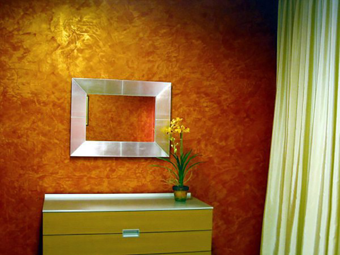 При помощи веника или метелки можно создать структуру с еле заметными вертикальными полосами. Чтобы покраска выглядела более интересно, можно нанести первым слоем светлую краску, а вторым – темную. Использовать лучше всего текстурную краску, она более плотная и рисунок на ней сильнее выражен.