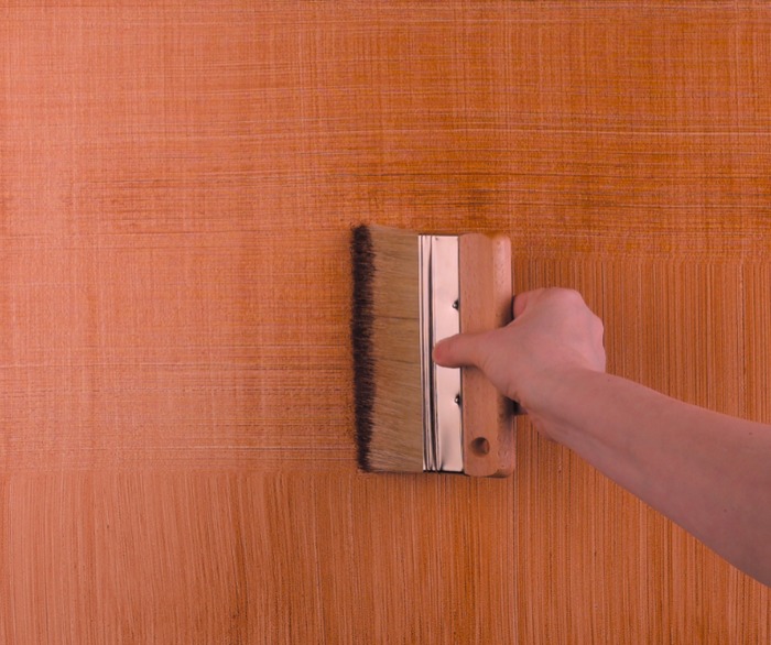 Если хотите получить декор, напоминающий льняную ткань, воспользуйтесь жесткой щеткой для обуви. Ее удобнее и проще держать в руке, чем веник. Вначале сделайте вертикальные полосы, а после – горизонтальные. Чтобы полосы оставались четкими и ровными, постоянно очищайте веник или щетку от излишков краски.